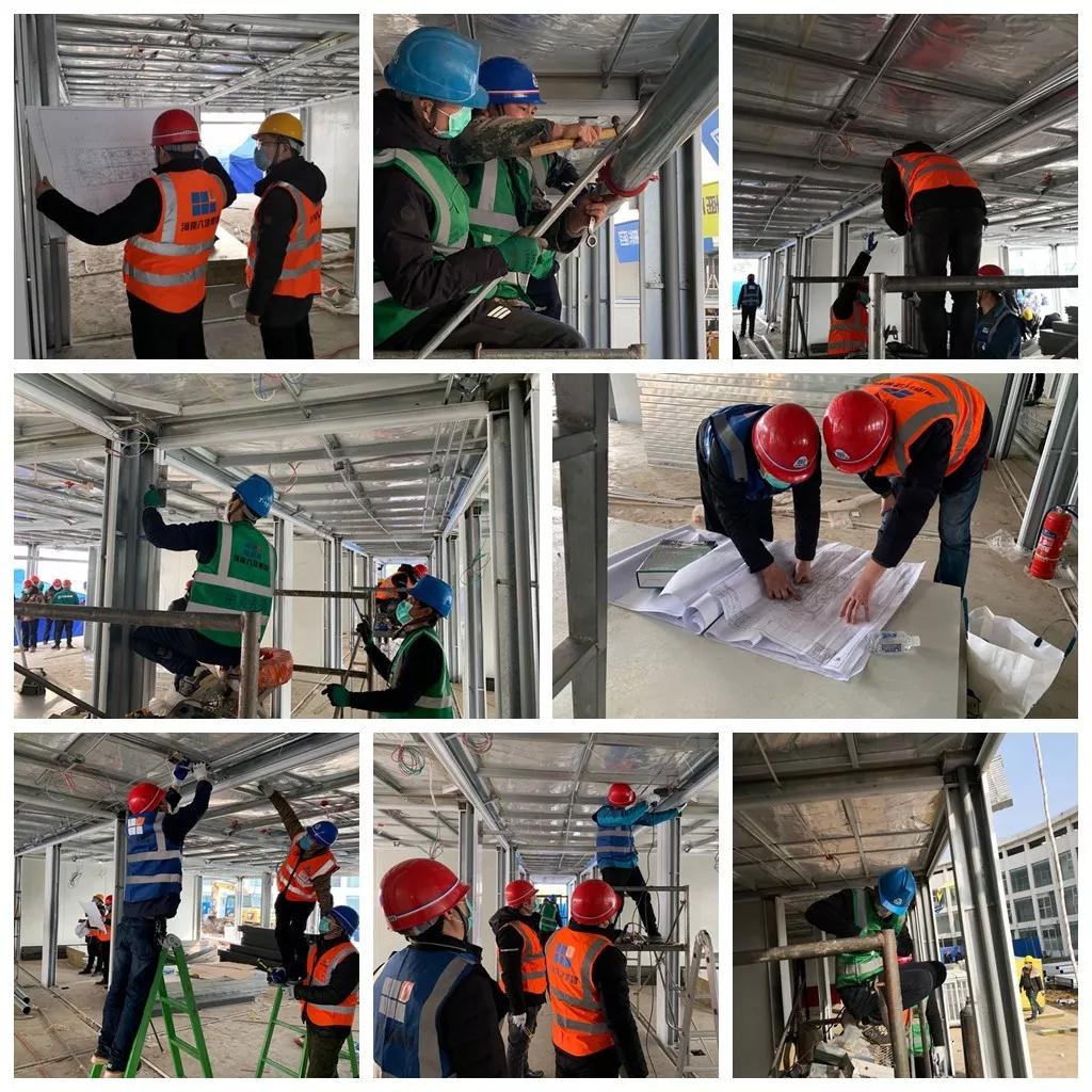 本次援建洛阳医疗应急救治中心项目工程,河南六建主要承担二号楼消防系统的水电、弱电安装施工任务,时间紧、任务重,参加援建的全体人员斗志昂扬,迅速地投身于紧张的施工作业中。一进入施工现场,现场指挥的领导立即与工程建设指挥部积极协调,统筹调配人员,保证施工人员自身防疫、安全的同时,做好施工人员的后勤保障,组建作业班组,安排部署加工、安装作业,密切关注施工作业流程的各个环节。参战施工人员边熟悉图纸、边制定施工方案,组织材料进场,做好工具配备,针对施工现场交叉作业多,工序繁琐,作业坏境艰苦,他们克服施工中的各种困难,不分昼夜、不辞辛劳、以忘我的工作热情紧张施工。