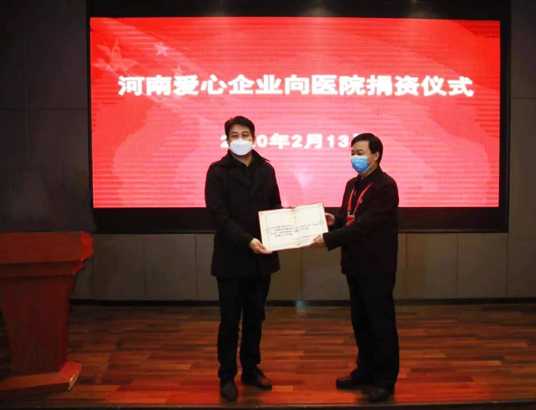 捐资仪式上,集团公司党委副书记、纪委书记张文德代表集团公司向郑大一附院捐赠100万元,用于该院新冠肺炎疫情防控工作,为抗击疫情贡献了企业的一份力量。