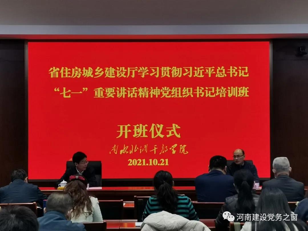 为扎实开展党史学习教育和“四史”宣传教育,进一步深入学习贯彻习近平总书记“七一”重要讲话精神,10月21日至10月23日,省住房城乡建设厅在南水北调干部学院举办学习贯彻习近平总书记“七一”重要讲话精神党组织书记培训班。
