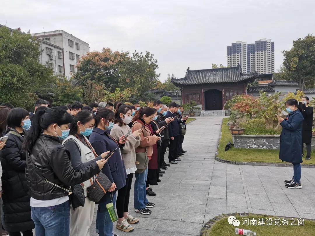 在参观教学中,学员们来到花洲书院,在解说员的带领下,参训党员参观了范文正公祠、百花洲等景点,在观赏院中美景的同时,潜移默化中接受着“忧乐”文化和廉政文化的教育。最后,在机关党委副书记王红娜的带领下,一起朗读了范仲淹的《岳阳楼记》,“不以物喜,不以己悲”的声音在花洲书院回荡,节奏韵律明显,感情充沛,气势磅礴,仿佛让大家穿越时空看到范公挥笔书写《岳阳楼记》的豪情。