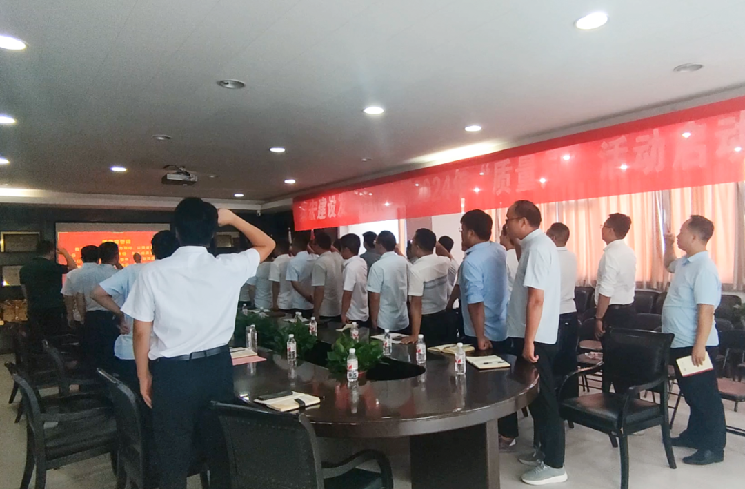 会上,公司积极响应质量月活动倡议,组织参会人员举行质量宣誓仪式,仪式由公司副总经理兼总工程师李守坤进行领誓。与会人员还开展了质量承诺签名活动。