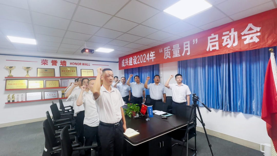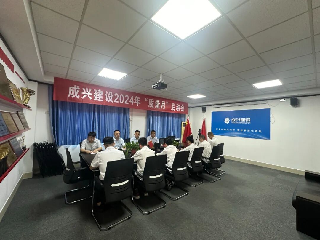 公司副总经理李伟康宣贯了成兴建设《关于组织开展2024年“质量月”活动的通知》,并对公司2024年“质量月”活动进行了具体安排,李总指出:我们要以“质量月”活动开展为契机,坚持质量第一、效益优先的理念,改进质量管理薄弱环节,夯实质量管理基础工作,进一步实施精细化管理和精细化操作,优化技术经济指标,提升工程实体质量,增加经济效益,推动公司品牌文化建设,促进经营再上新台阶,助力公司高质量发展。